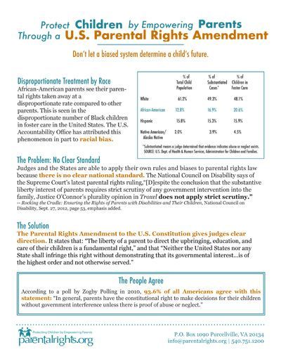 A 2010 poll showing that 93% of all Americans from any political party believe in the traditional right of parents to make decisions on behalf of their children (except in cases of abuse or neglect).